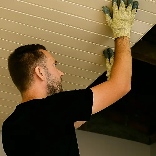 A montagem do forro PVC é realizada por profissionais qualificados, que seguem padrões técnicos rigorosos para assegurar um acabamento impecável.